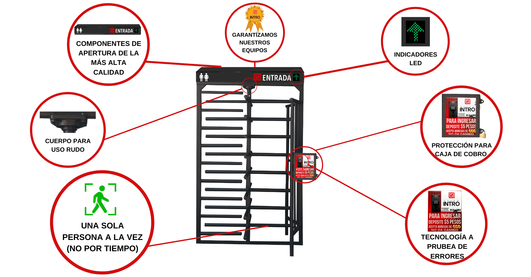 Máquina para control de acceso con monedero unimoneda (acepta monedas de 1 denominación, No regresa cambio).